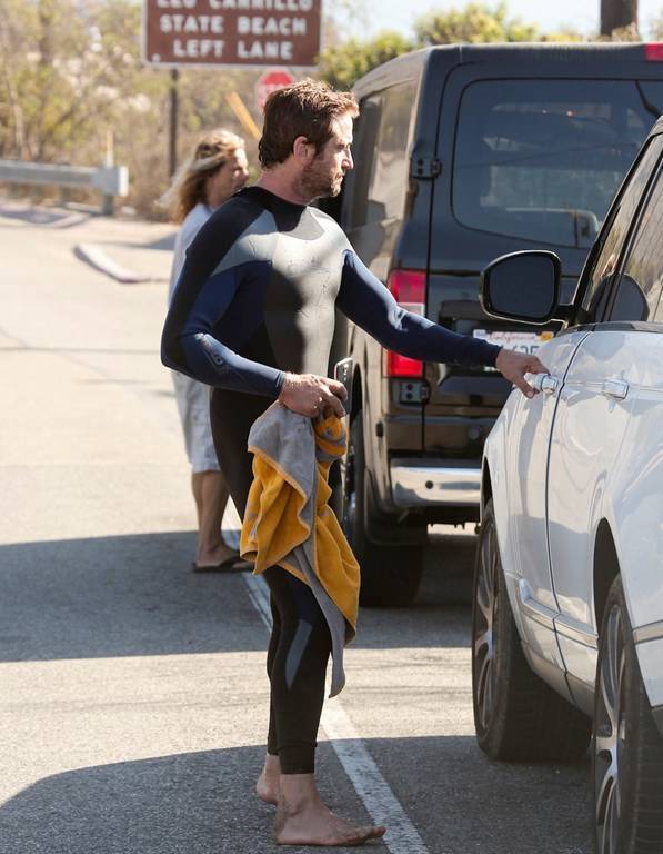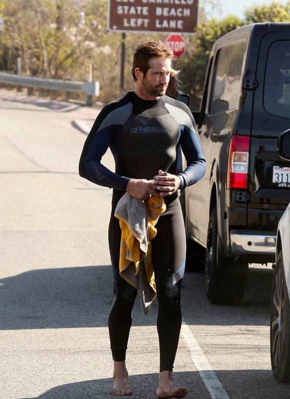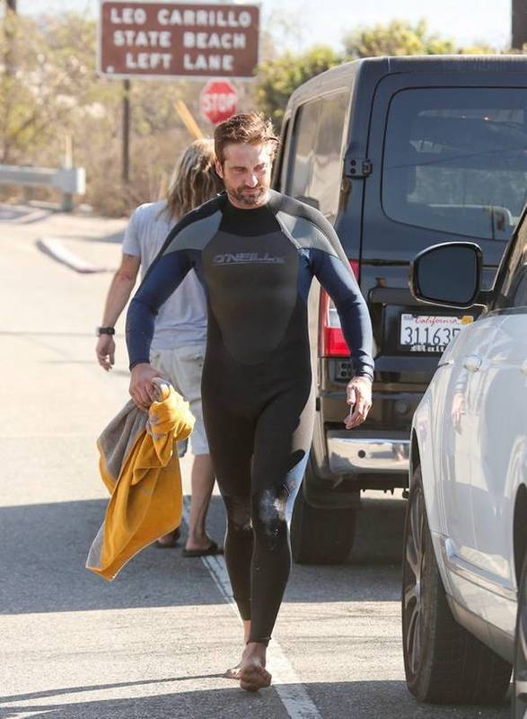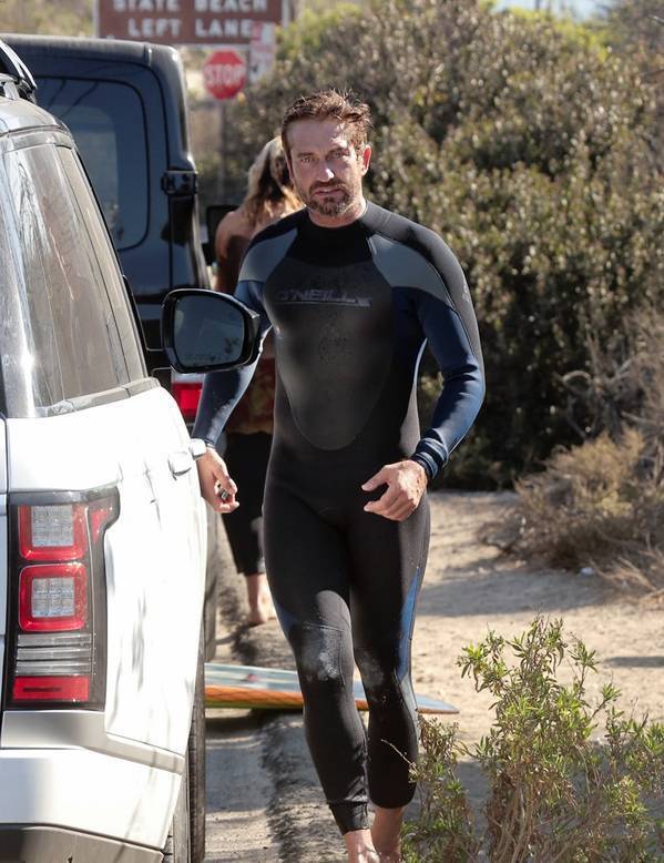 Джерард Батлер продемонстрировал свою безупречную фигуру в гидрокостюме, когда рано утром был замечен на побережье Лос-Анджелеса после катания на доске.