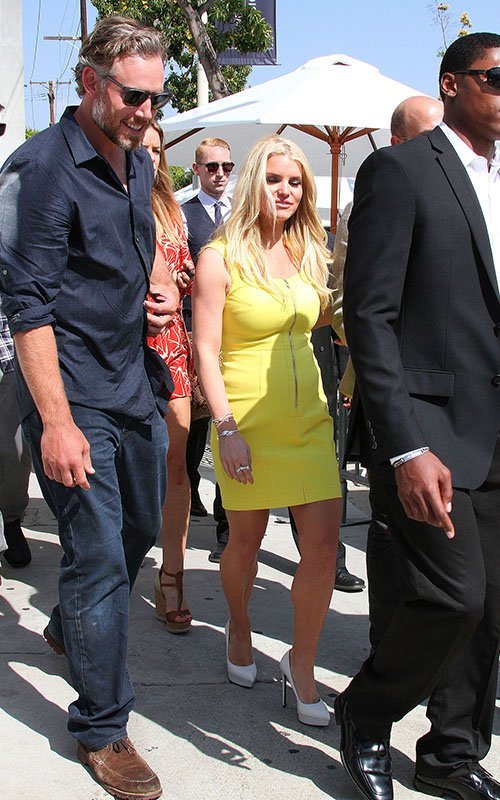 33-летняя Джессика Симпсон была в ярко-желтом платье мини, так она продемонстрировала результаты ее режима ухода за фигурой, в то время ее красивый жених Эрик Джонсон не отходил от девушки ни на минуту.