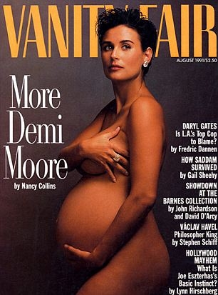 Деми Мур в 1991 году снялась обнаженной для обложки журнала Vanity Fair, будучи на девятом месяце беременности. В те времена это произвело большой фурор. После нее многие знаменитые будущие мамочки повторяли сей «подвиг». Последней это сделала 31-летняя певица Джессика Симпсон, снявшись для обложки журнала Elle в Америке.
