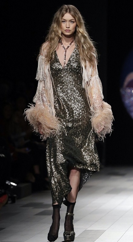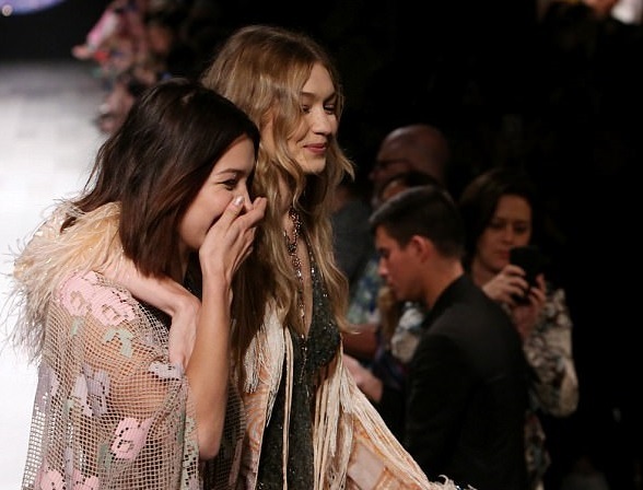 Пользователи сети предположили, что модель потеряла босоножку, но в прессе такой ход назвали пиаром. На финальной проходке Джи поддержала её младшая сестра Белла, которая так же приняла участие в показе.