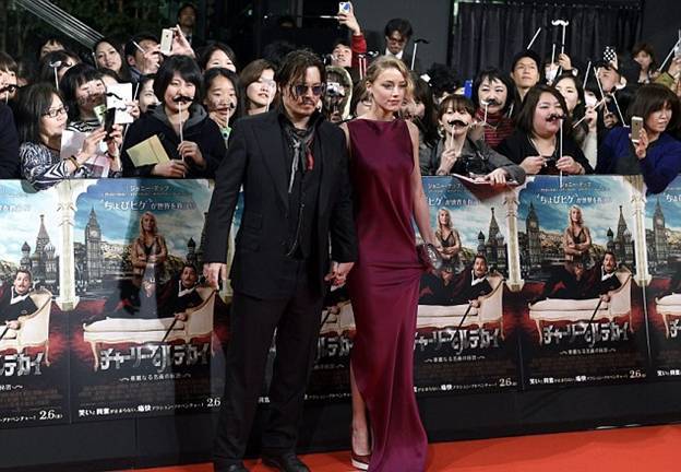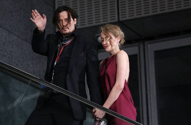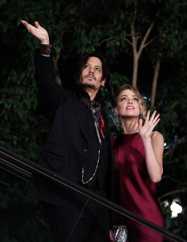 Джонни Депп и Эмбер Херд на японской премьере фильма "Мордекай"