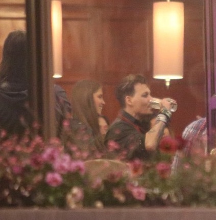 Похоже Депп решил абстрагироваться от слухов, которые разгорелись в СМИ на протяжении последней недели. Мужчина с подругой и друзьями весело провели время в баре при Grand Hotel.