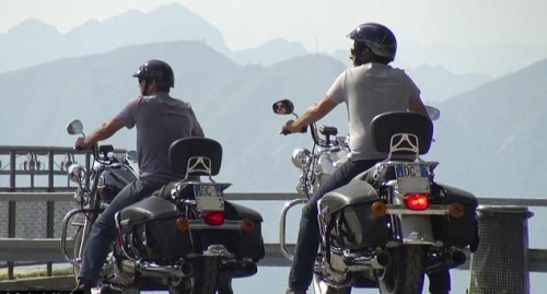 Джордж Клуни известен своей любовью к езде на мотоцикле, поэтому нет ничего удивительного, что актера заметили на Harley Davidson в окрестностях озера Комо, где он живет уже почти месяц на своей итальянской вилле.