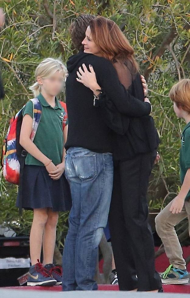 Пара была замечена, когда забирала свою девятилетнюю дочь Хейзел со школы. При этом Джулия и Дэнни не стесняясь демонстрировали свои чувства на публику, целуясь и обнимаясь.
