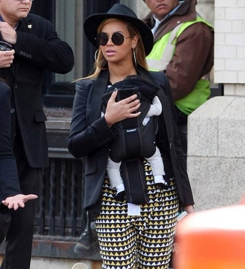 30-летняя певица Бейонсе гуляла со своей маленькой дочерью и матерью Тиной Ноулз по окрестности Трибека. Певица выглядела очень стильно, что и не удивительно, ведь это ей удавалось даже на последних месяцах беременности. Гуляя, она закрывала голову ребенка рукой, как будто защищала его от всего зла на планете. Бейонсе родила Блюй Иви ( Blue Ivy) 7 января от продюсера и суперзвезды хип-хопа Jay-Z.