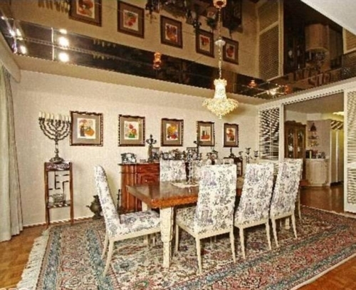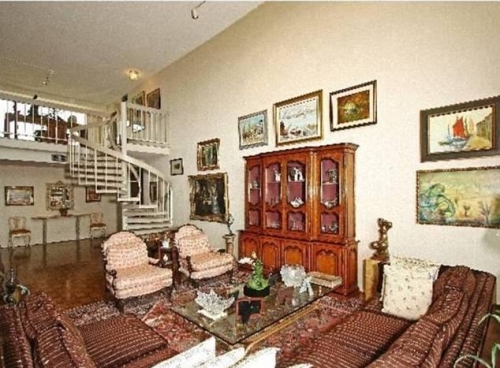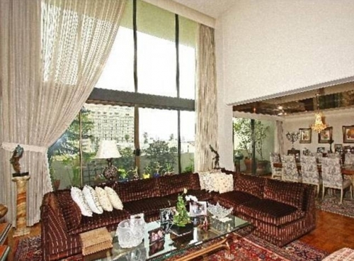 Квартира имеет два этажа, в ней расположены три больших спальни и четыре ванных комнат.