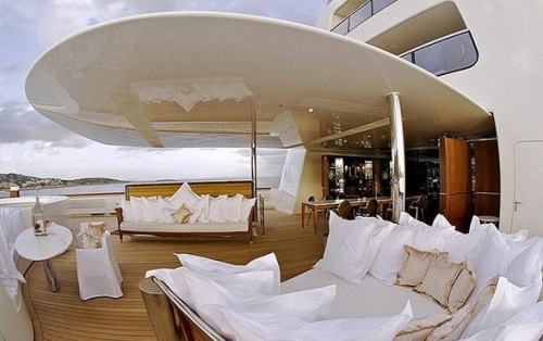 Интересно сделана каюта хозяев площадью 240 кв. м, она расположена на самом верху рубки. К ней вдоль стен, облицованных листовым серебром, ведет спиральная лестница, только перила которой обошлись миллиардеру в $60 тысяч.