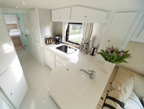 Фирма Volkner Mobil представила 40-футовый дворец на колесах, который предлагает полный комплект роскоши для самых взыскательных путешественников. Этот автодом за 1.2 миллиона долларов окрестили идеальным, благодаря скрытому гаражу, в который помещается спортивный автомобиль, например Ferrari или Lamborghini.