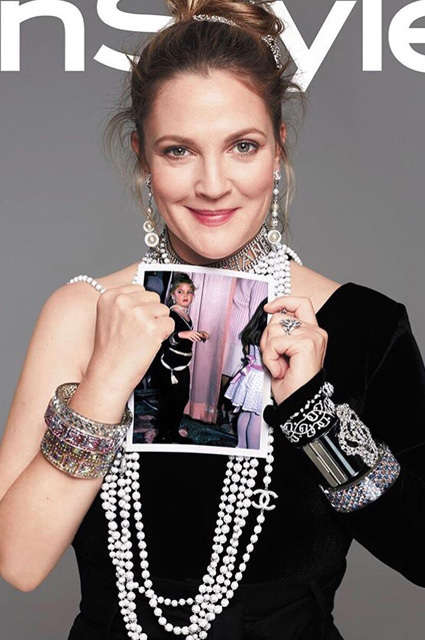 Фотосессия была посвящена детским фотографиям Дрю. Актриса воссоздала несколько знаковых образов.