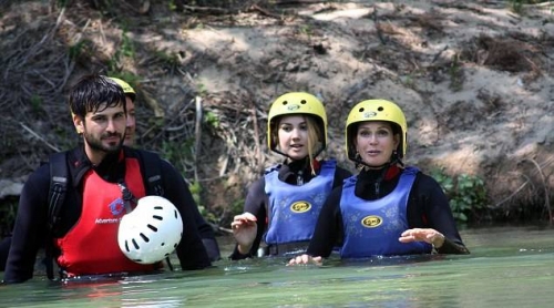 47-летняя актриса с дочерью совершили сплав по реке Цетин в районе города Задар. Одетые в гидрокостюмы, спасательные жилеты и шлемы, они на плотах спустились вниз по реке.