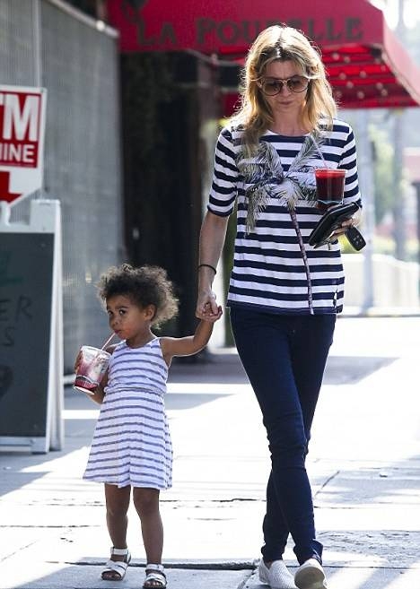 Мама и дочка были одеты в похожую одежду, девочка в полосатое платье, а Эллен в полосатую футболку. Актриса сейчас наслаждается отдыхом перед началом съемок очередного, девятого, сезона сериала «Анатомия Грей», где она играет главную героиню доктора Мередит Грей.