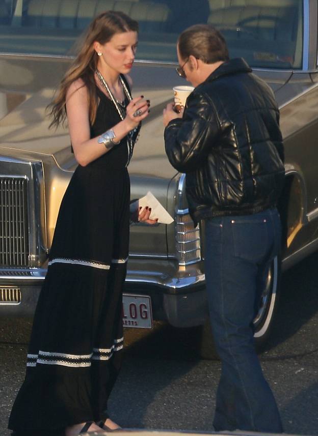 Эмбер Херд навестила своего жениха Джонни Деппа в Бостоне, где он сейчас снимается в фильме "Черная месса". Пара была замечена на съемочной площадке фильма во время перерыва.
