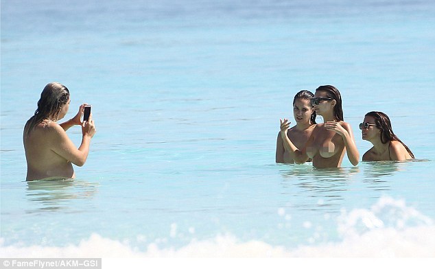Позже подружки девушки также решили порезвиться на волнах топлесс.