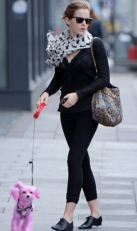 Надо заметить, что Эмма не единственная знаменитость, которая красит собак. Так, Эмбер Херд, актриса кому приписывают роль разлучницы Джонни Деппа и Ваннесы Паради, постоянно красит своего йоркширского терьера в вишневый цвет, Виктория Бекхэм обходится меньшим, она разрисовывает розовые ногти своему бульдогу.