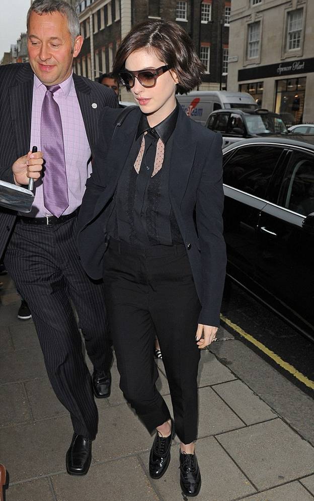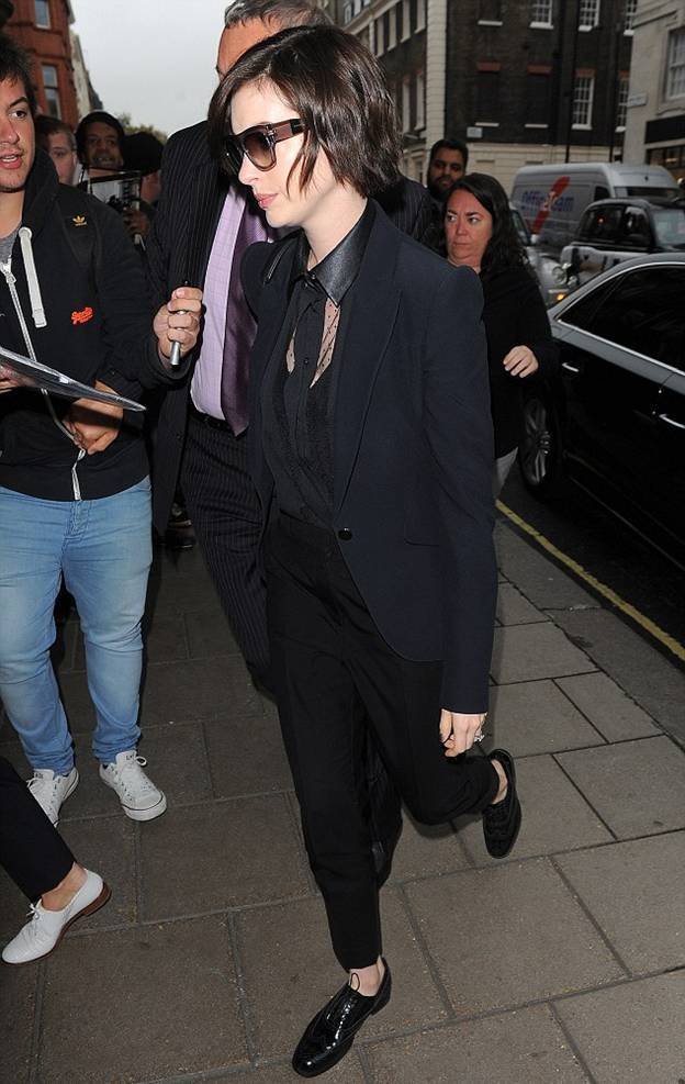 Во вторник днем Энн Хэтэуэй была замечена в Лондоне, когда покидала свой отель. Надо заметить, что сейчас у нее очень напряженный график работы. Она снимается сразу в двух фильмах "Алиса в Зазеркалье" и "Стажер", а также продвигает фантастический фильм "Интерстеллар".