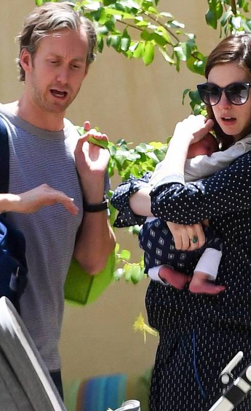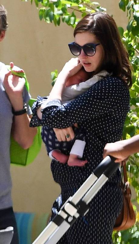 Энн Хэтэуэй впервые замечена с новорожденным сыном