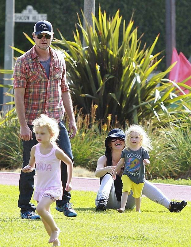 Эрик Дейн и Ребекка Гейхарт с детьми на прогулке