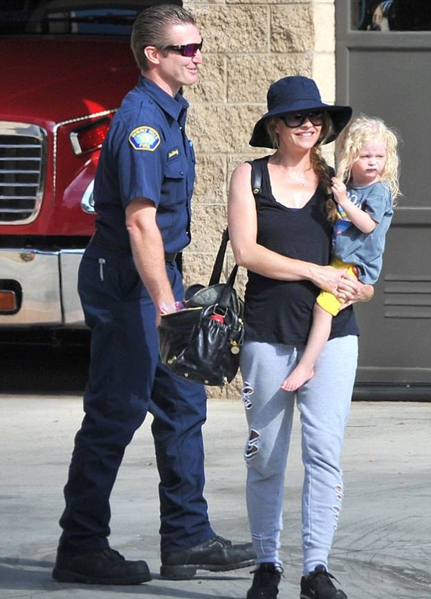 Субботним днем Эрик Дейн и Ребекка Гейхарт со своими дочерьми были замечены на экскурсии по пожарной части Лос-Анджелеса, где они рассматривали специальные машины и беседовали с пожарниками.