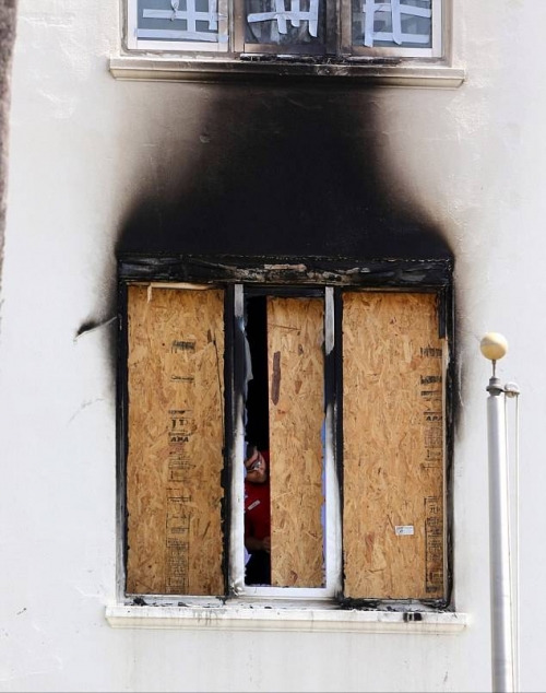 По сообщению пожарной и страховой компаний Лос-Анджелеса, пожар был случайным, он наступил из-за зажженной свечи, которую оставили без присмотра в зале на диване. В результате погиб один из ее терьеров, она вместе с братом и неустановленным другом, который в тот вечер ночевал у нее, получили незначительные ранения. Также пострадало еще четыре соседних квартиры.