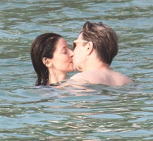 Гарри Олдман со своей молодой женой на Сен-Барт.
