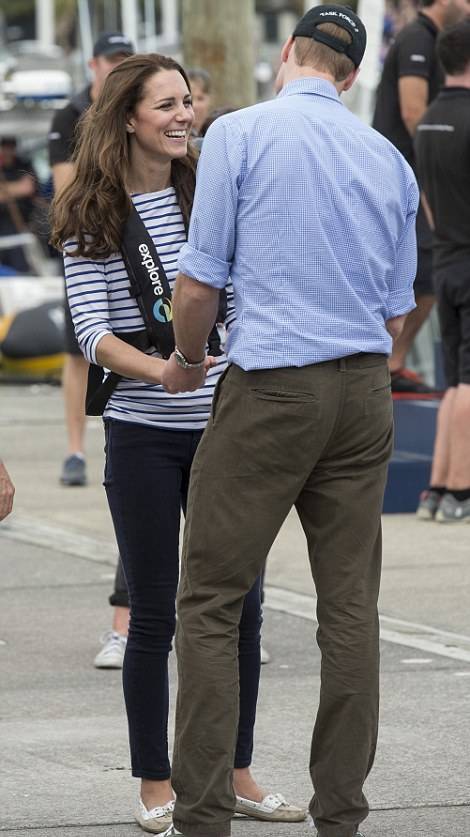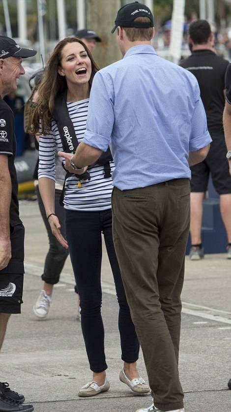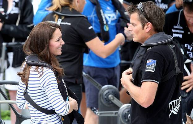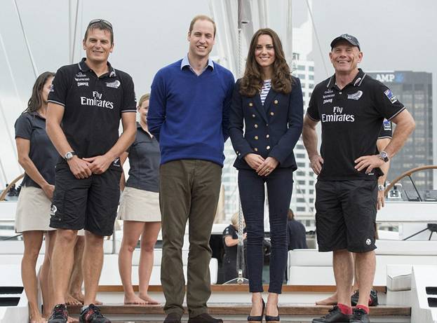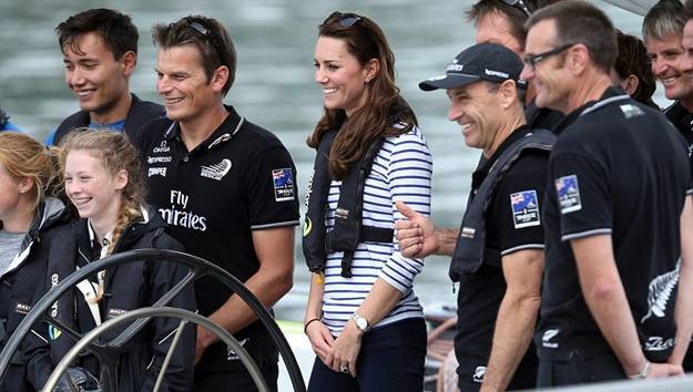 Герцогиня Кембриджская и ее супруг принц Уильям продолжают свой визит в Новую Зеландию. Они посетили Окленд. Несмотря на плохую погоду, пара приняла участие в морских гонках по заливу города.