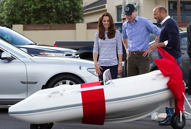 Позже они посетили известную фирму по производству катеров Sealegs, которая подарила их сыну Георгу одну из последних своих разработок мини катер-амфибию.