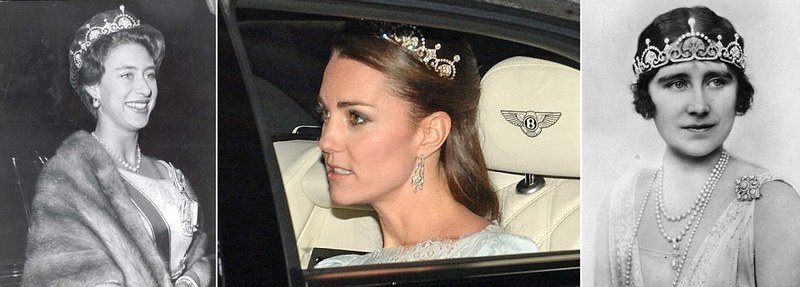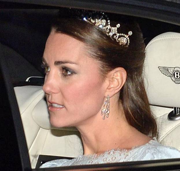 Что интересно, тиара, одетая герцогиней ранее принадлежала принцессе Маргарет, которой досталась от королевы-матери. После ее смерти в феврале 2002 года, тиара вернулась в королевскую сокровищницу. Как сообщил пресс-секретарь Кенсингтонского дворца, королева Елизавета II одолжила тиару Кейт для приема.