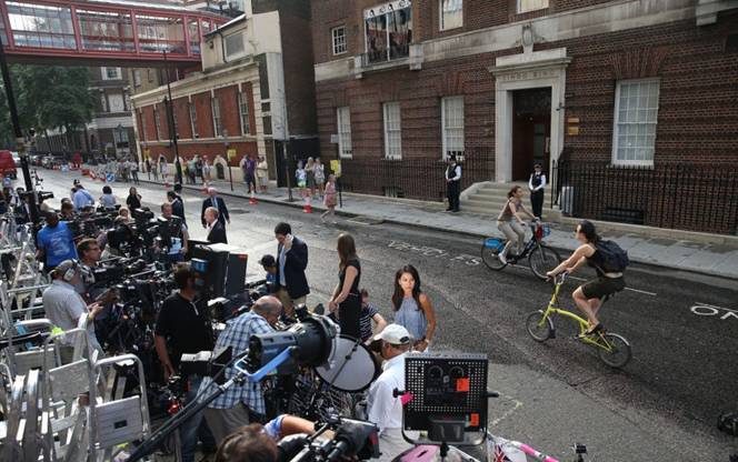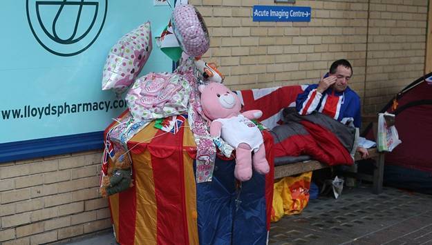 С утра к больнице Св. Марии стекались многочисленные люди, вооруженные камерами, которые ждали радостного объявления о появлении ребенка Кейт и Уильяма. Прямо здесь, недалеко от входа в больницу принимались ставки на пол и имя будущего ребенка.