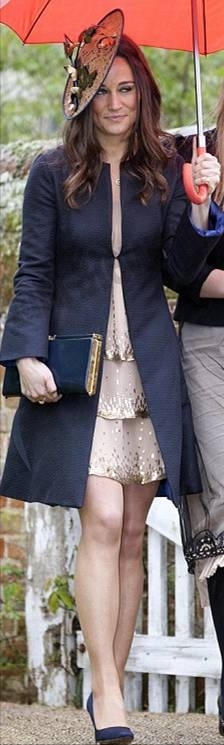 Ее младшая сестра Пиппа оделась более нарядно, это блестящее платье из новой коллекции модного бренда Dannii Minogue.