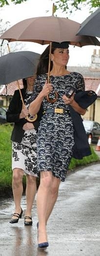 Герцогиня была одета скромно, на ней было прошлогоднее платье от Erdem, которое она надевала в свой первый официальный визит в Канаду, дополнив его новыми аксессуарами, поясом и шляпкой.