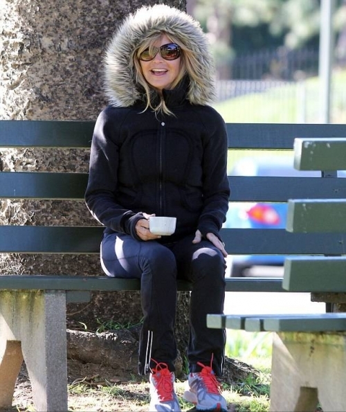 Смотря на эту моложавую и подтянутую женщину трудно поверить, что ей уже 67 лет. Голди Хоун была замечена на прогулке в парке на Голливудских холмах. Она наслаждалась спокойствием и собиралась выпить в тишине чашечку кофе, пока не заметила папарацци.