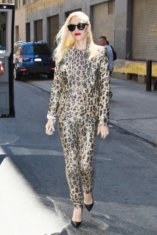 В среду, Гвен Стефани, одетая с головы до ног в костюм с леопардовым принтом, была замечена в Нью-Йрке, когда прибыла в звукозаписывающую студию, где ее уже ждали остальные члены группы No Doubt.