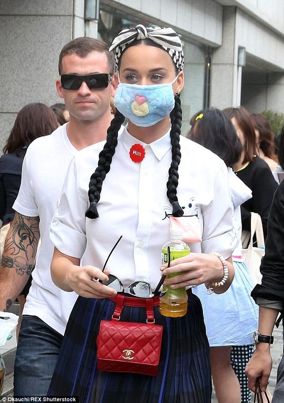 Похоже, что Кэти Перри решила в Японии не слишком демонстрировать свое лицо, скрывая его за масками.