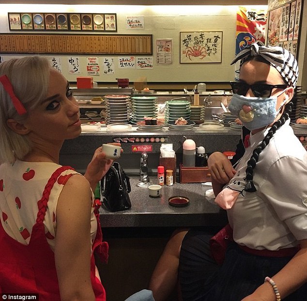 Еще в четверг вечером прилетев в страну, она показалась в аэропорту Токио с черной маской на лице. И вот в пятницу поп-звезда появилась на улицах столицы Японии в маске более веселой расцветки, чем привлекала к себе повышенное внимание прохожих.
