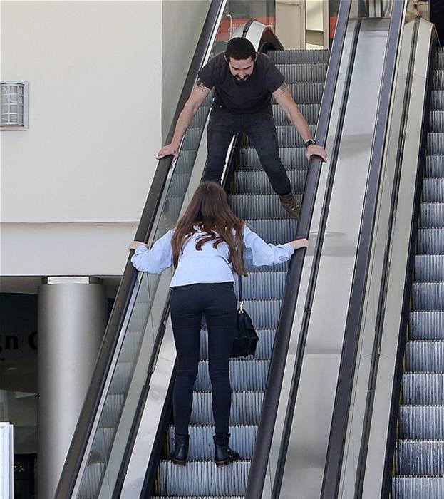 Однако в среду молодые люди устроили шутливое представление друг для друга во время поездки на эскалаторе торгового центра Студио-Сити.