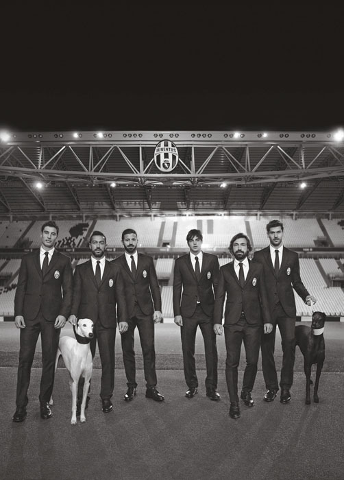 Также, модный Дом совместно с игроками самого титулованного клуба Италии выпустили календарь, в котором появились игроки туринского Ювентуса в новых костюмах итальянского бренда. Съемки проходили на стадионе туринцев — Juventus Stadio. В рекламной компании, приняли участие такие звездные игроки, как Андера Пирло, Марко Сторари, Паоло Де Челье, Фабио Квальярелла, Федерико Пелузо и Фернандо Льоренте. Кроме того, в фотосессии были задействованы грейхаунды, которые являются символом Trussardi уже много лет.