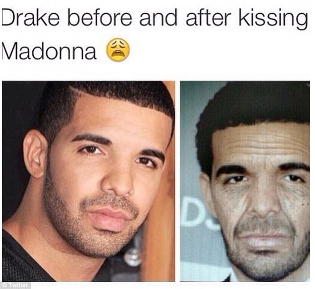 Как всегда интернет-пользователи не могли остаться в стороне и не обсудить поцелуй Мадонны с Дрейком.