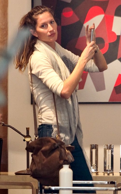 В среду Жизель с ее друзьями видели в Западном Голливуде, где она ходила по антикварным магазинчикам и художественным галереям. Иногда, бразильская красотка не могла решить, подходит это к ее дому или нет и фотографировала эту вещь на свой iPhone, видимо, чтобы потом в спокойной обстановке подумать или может посоветоваться со своим мужем, стоит покупать или нет.