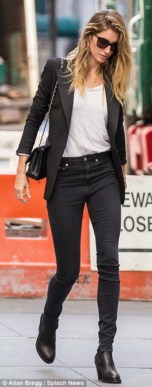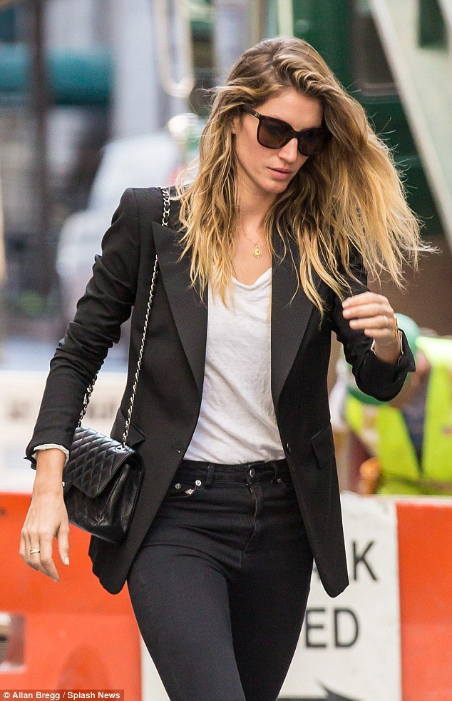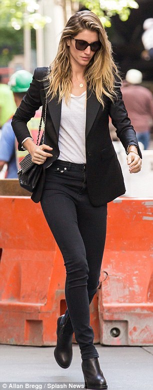 Жизель была замечена в джинсах-бойфрендах с низкой посадкой на Манхэттене во вторник