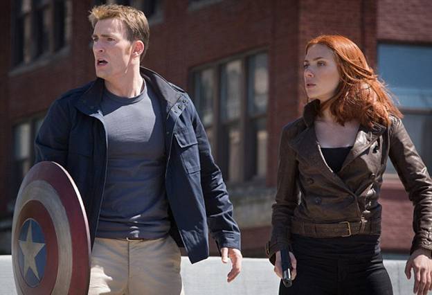 Скарлетт Йоханссон и Крис Эванс в фильме "Первый мститель: Другая война"