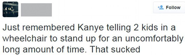 Канье Уэст заставляет на своем концерте всех зрителей встать и прекращает его, когда не встают двое людей...как оказалось инвалидов