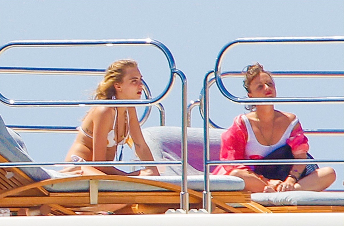 Кара была замечена, когда проводила время на яхте с ее подругой Суки Уотерхаус.