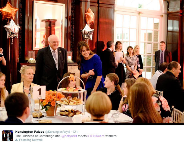 Благотворительная организация "Fostering Network" ежегодно проводит церемонию награждения "Fostering Excellence Awards". Главными героями такого мероприятия являются талантливые дети и подростки, которые остались без дома и семьи. В этом году главная роль вручения наград и подарков была отведена Кейт Миддлтон.
