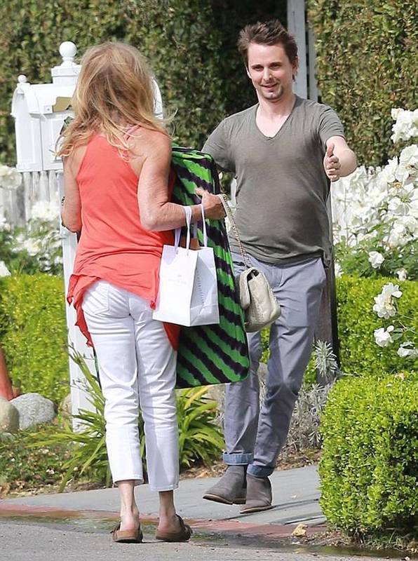 С утра ее приехал поздравить бывший жених и отец младшего сына Мэтт Беллами. 37-летний музыкант был замечен возле дома Кейт, где тепло встретился с матерью именинницы Голди Хоун.