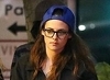 Фактически без макияжа, после многочасового перелета с маленькими детьми, актриса воевала со своим багажом.