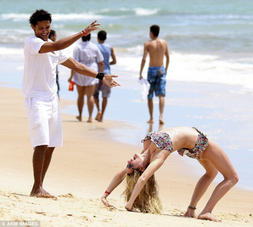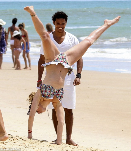 Келли Брук попробывала себя в модельном бизнесе, была ведущей на телевидение, снималась и продюссировала кино, но похоже она решила еще продемонстрировать и свои гимнастические навыки. 31-летняя актриса тренировалась на берегу моря в Баия, Бразилия, под руководством инструктора по капоэйры.