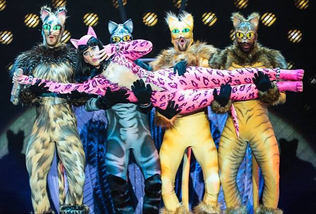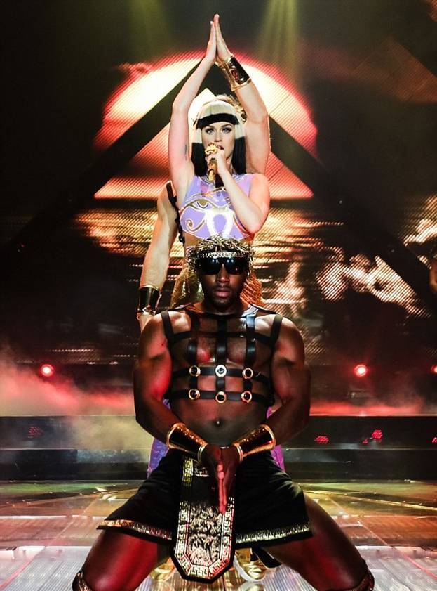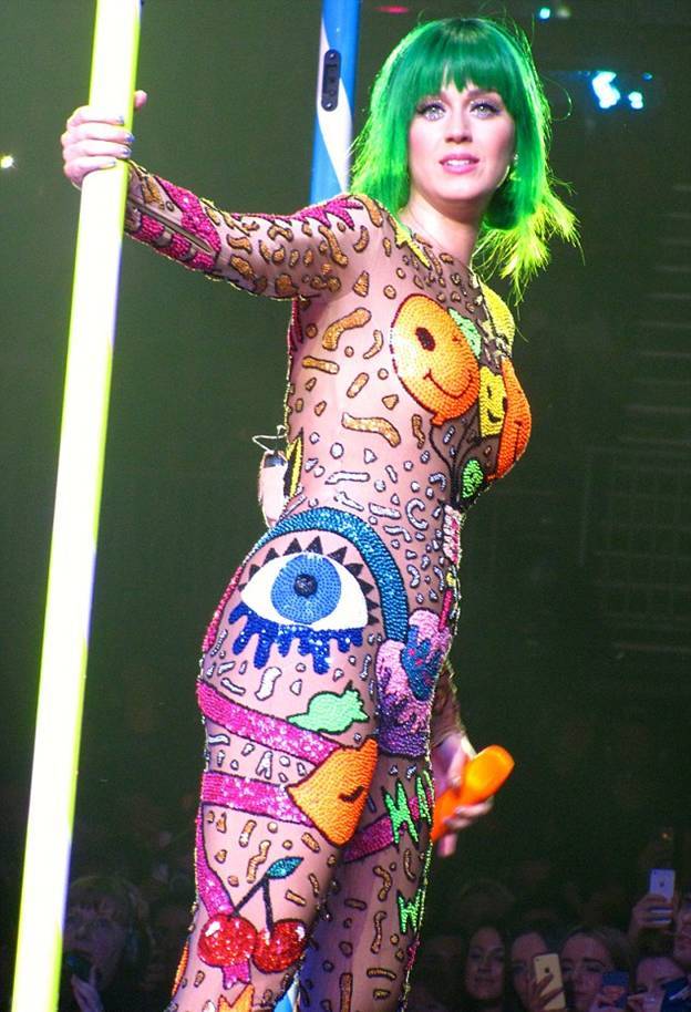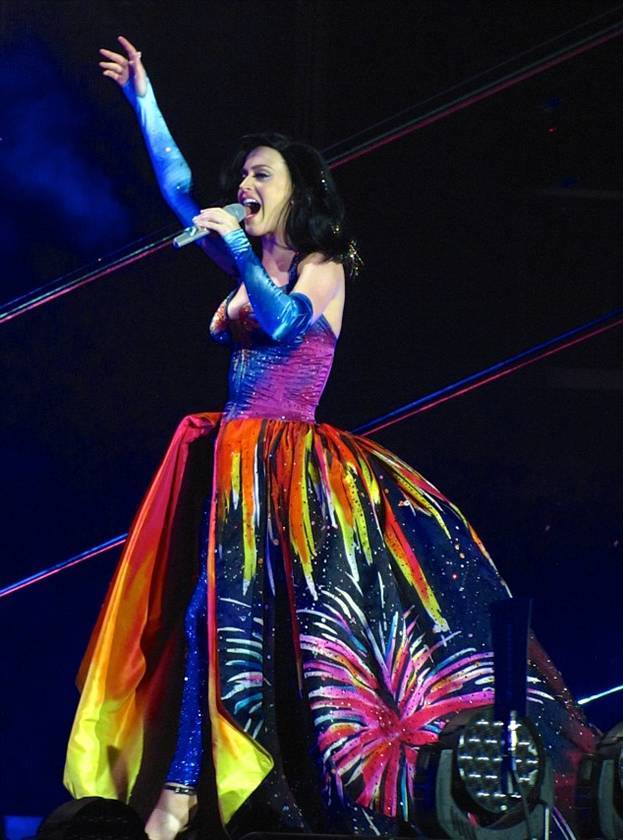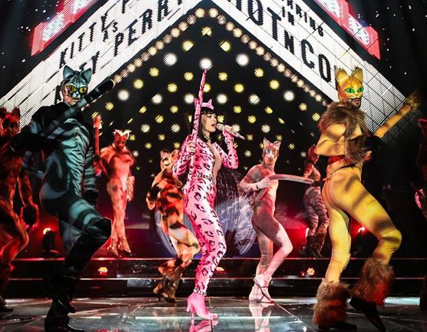 Известно, что над ее костюмами работали такие известные модные дома как Валентино, Роберто Кавалли, а также Джереми Скотт под брендом Moschino. Во время выступления Кэти продемонстрировала около десятка нарядов, которые соперничали друг с другом в яркости цветов и блеске.