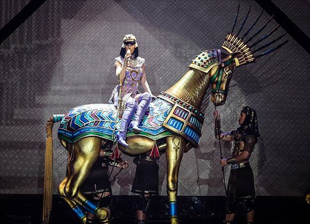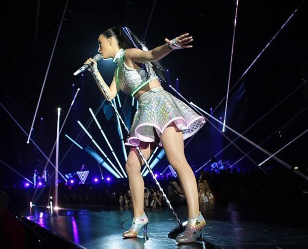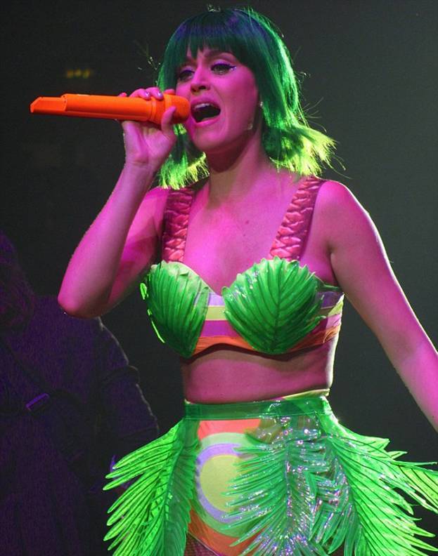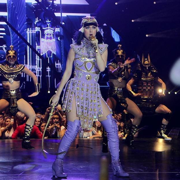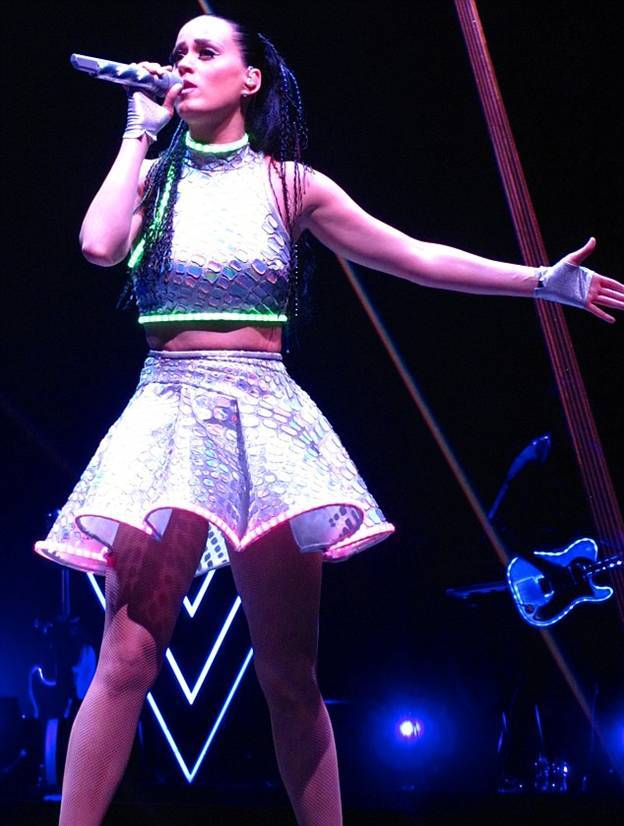 Кэти Перри начала свое мировое турне Prismatic с выступления в среду вечером в Белфасте. В отличие от Майли Сайрус, которая также начала гастролировать по Европе, ее костюмы были намного скромнее.