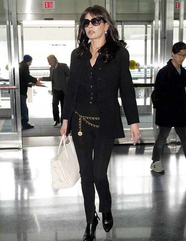 Во вторник днем в аэропорту Нью-Йорка были замечены Кэтрин Зета-Джонс и Майкл Дуглас. Несмотря на то, что пара отправилась в дорогу, их внешний вид был безупречен. И если одежда Майкла была попроще, то весь облик Кэтрин, от полусапожек Джузеппе Занотти до сумки Гермес Биркини, олицетворял собой шик и респектабельность.