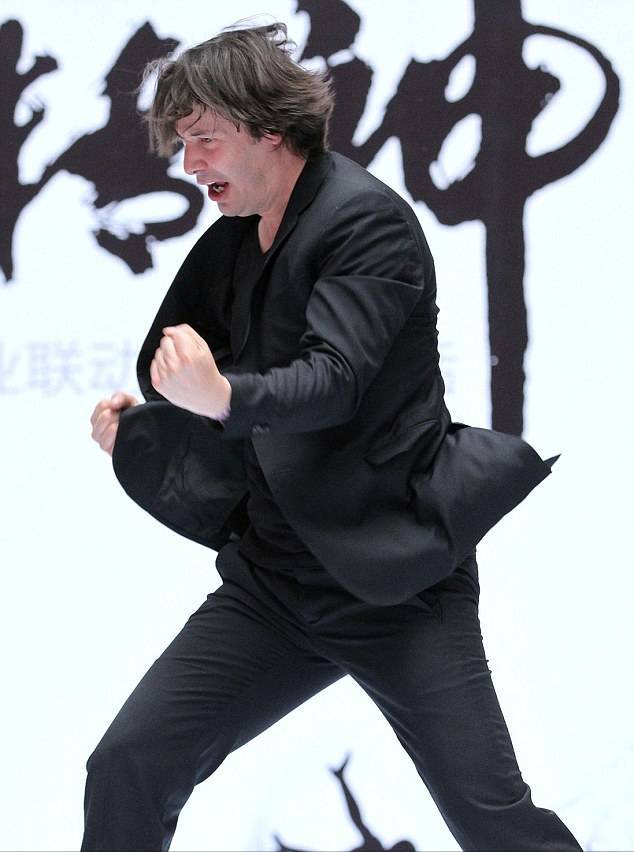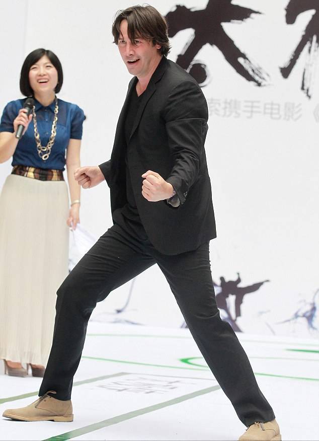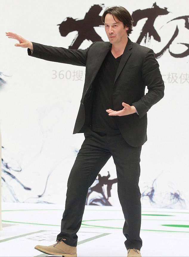 В четверг на пекинской киноконференции 48-летний актер показал свое умение в кунг-фу, когда представлял свой новый фильм «Мастер тай-цзи». Надо заметить, что в этом фильме состоялся режиссерский дебют Киану и актерский его тренера по восточным единоборствам Тайгера Ху Чен.
